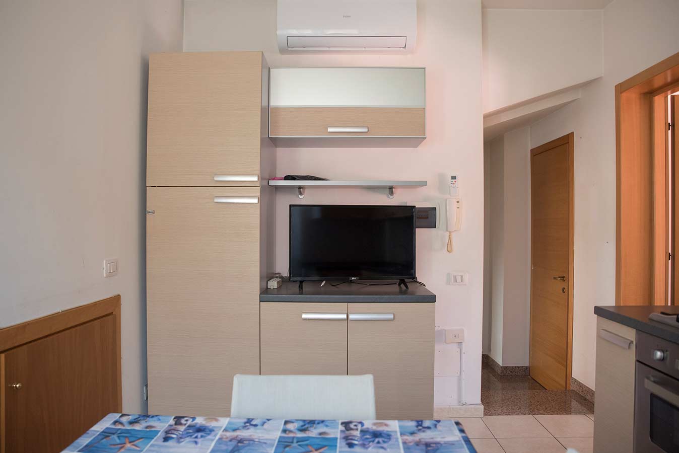 Camera matrimoniale, cucina, bagno con doccia, lavatrice, tv, aria condizionata, lenzuola, asciugamano e accappatoi.